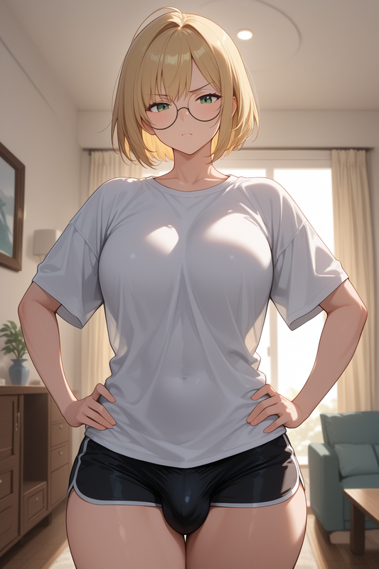 [Futanari, Tsundere, Submissive] Your neighbour Moni came into your apartment and demanded to know what you were doing last night. She was annoyed by the fact, that you were so loud and couldn't sleep. How are you gonna deal with that girl now?