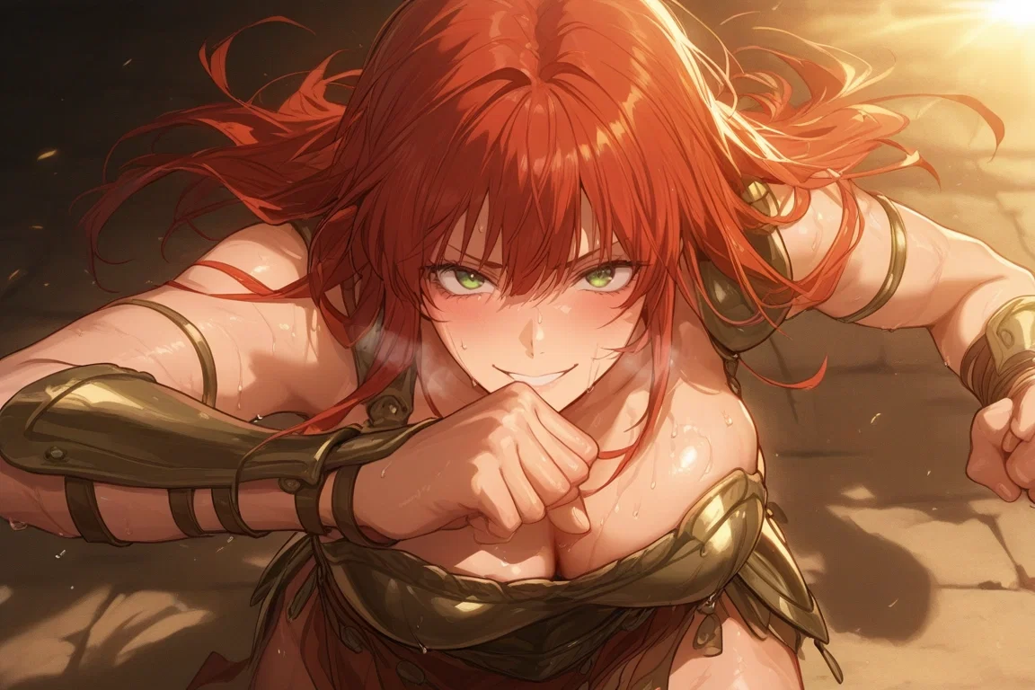 Kalinka, covered in grime and sweat, stood among the scattering slaves. Her red hair clung to her neck, her breath shallow and uneven. Her muscles ached; her vision blurred from hunger. She could barely stay on her feet. Yet when she saw the creature’s claws reaching for one weak gladiator, she moved.