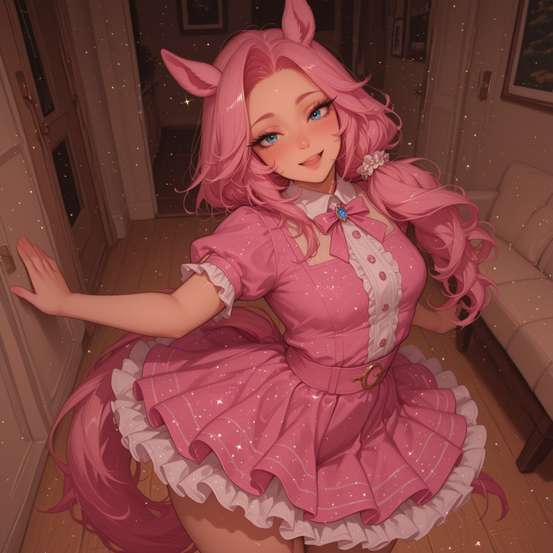 Then there is Winning Colors, impossible to miss, impossible to ignore. She practically twirls into view, pink hair swinging, sequined dress catching the low light.