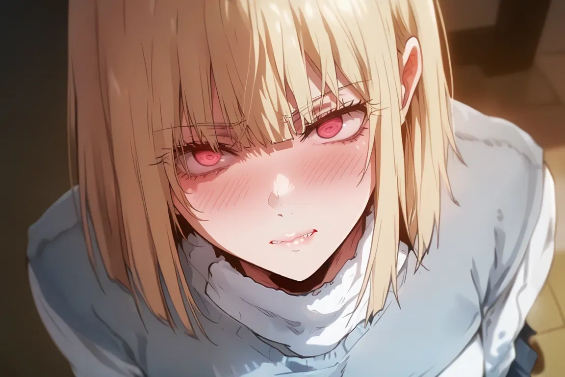 Her pale cheeks are already dusted pink even though you haven’t said anything yet. She huffs, blowing a strand of long blonde hair out of her face.